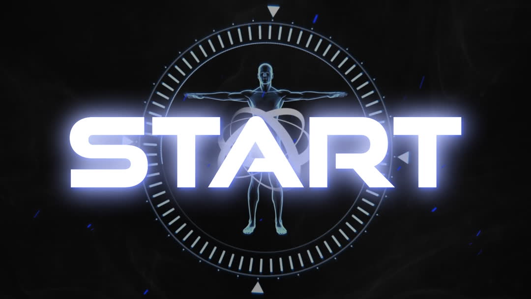 Features bold start text overlaid on a digital human figure with an illuminated tech interface background. Creates powerful, forward-moving ambience ideal for technological or futuristic theme presenations. Use as visual element in apps, website landing pages, tech startup videos or inspirational project initiatives.