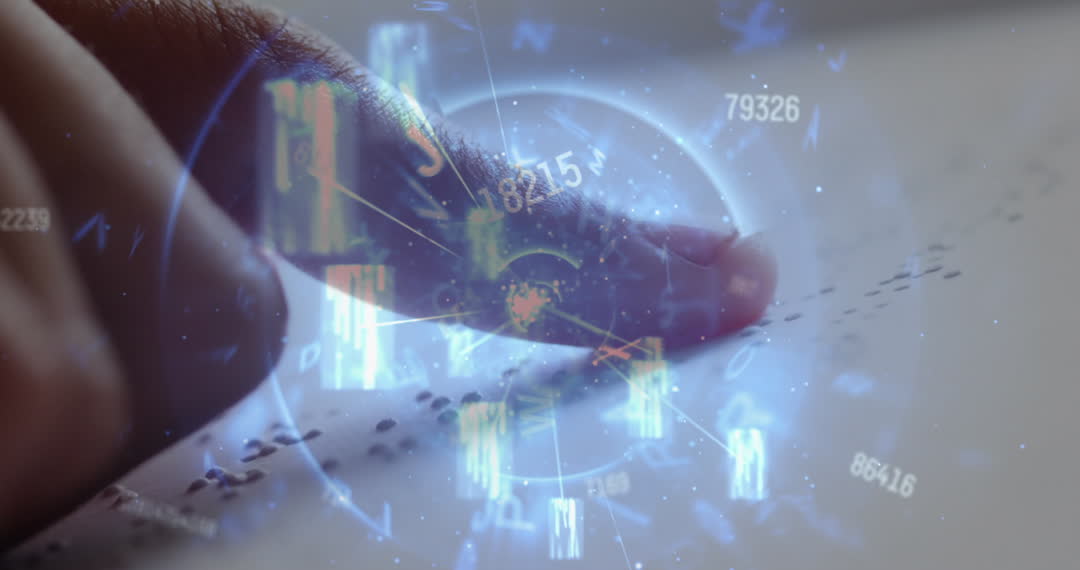 Visual representation of the integration of technology within the learning of Braille. The glowing numerical animation signifies the future of reading technologies and innovations for visually impaired individuals. This video is ideal for use in educational technology articles, accessibility awareness resources, and presentations demonstrating advanced assistive learning tools.