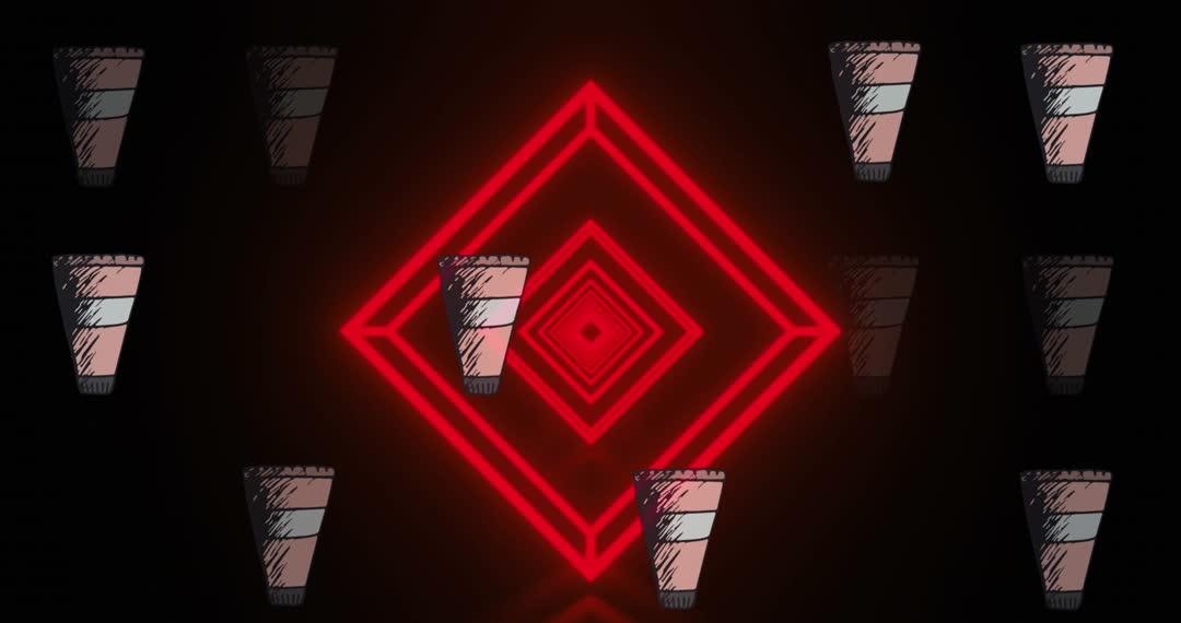 This animated scene depicts a futuristic digital network concept featuring glowing red geometric shapes and connection icons. Ideal for use in presentations, videos, and promotional materials related to technology, networking, digital interfaces, or modern communication strategies.