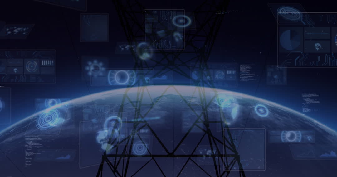 Animation depicting a transmission tower interlaced with digital graphics and coding symbols, creatively representing global connectivity and modern technology. Useful for illustrating concepts of electrical engineering, digital networks, data communication, or global technology advancements in presentations, tech blog posts, or educational materials.