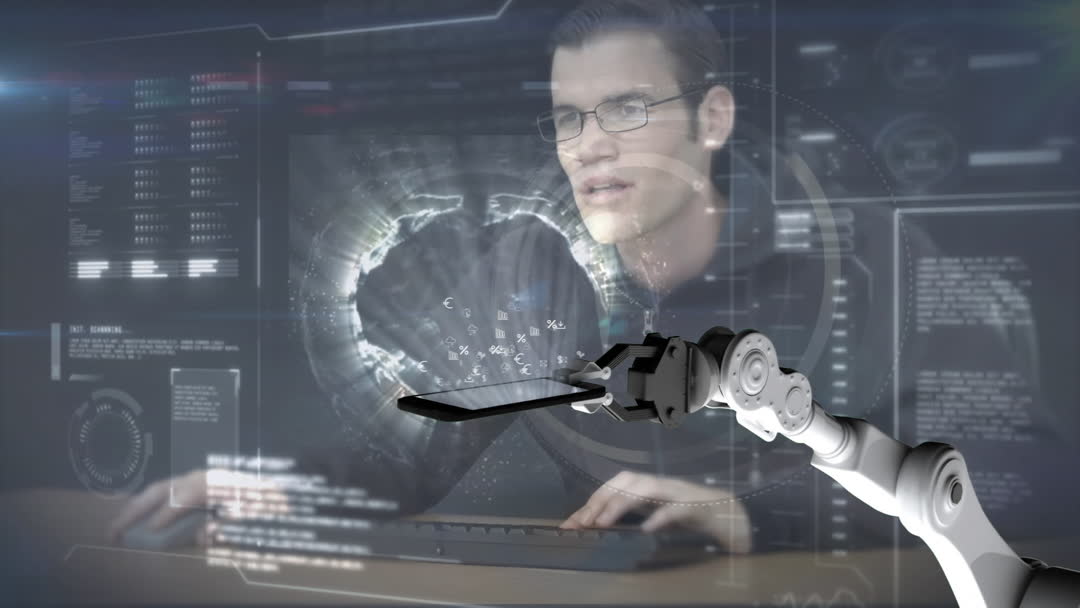 Futuristic Technology with Robotic Arm and Data Analyst Video