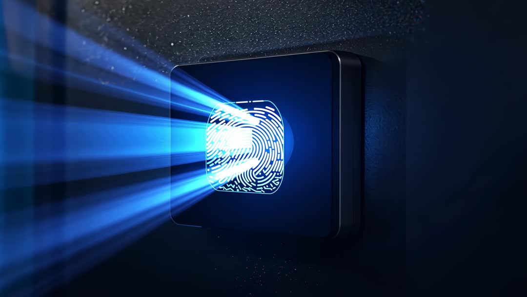 AI Generated Image. Image depicts an advanced fingerprint scanner system with blue light beams, ideal for representing modern security technology and innovative access solutions. Useful in illustrating concepts related to biometric authentication, cybersecurity, and futuristic access control solutions in technological contexts.