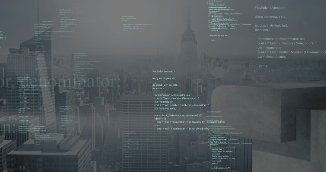 - Futuristic Urban Landscape Blending with Digital Code Flow