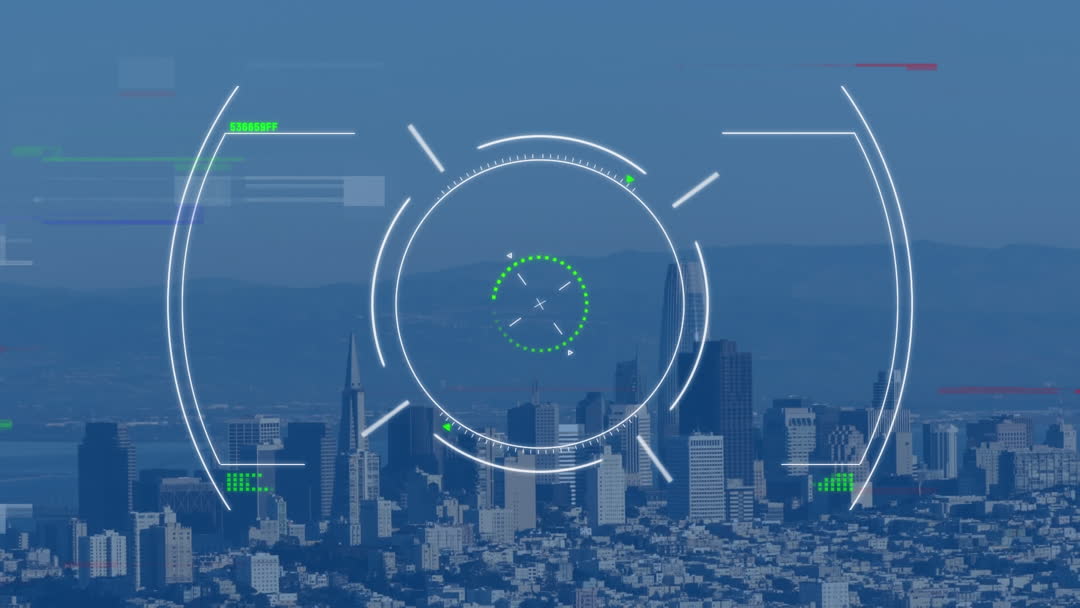 Visualizing a city skyline enhanced by a futuristic heads-up display (HUD) overlay. Perfect for illustrating concepts involving urban technology, global data connectivity, or innovative interface design. This video suits articles, advertisements, or presentations focused on advancements in tech, smart cities, or data infrastructure.