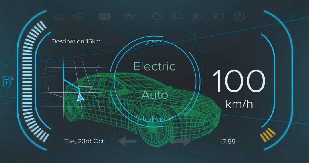 Futuristic vehicle dashboard features digital data, showing electronic driving interface and technology concepts. It can be used in contexts related to smart vehicles, tech, innovation, and digital tools for presentations, tech articles, or educational materials.