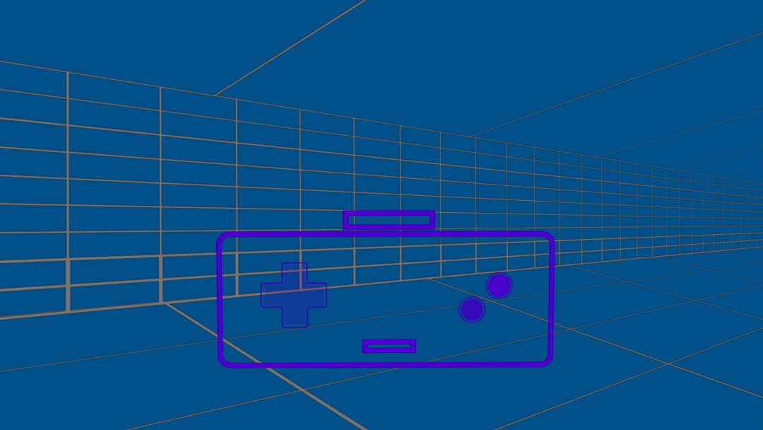 Abstract animation featuring a virtual reality game controller in blue digital space, representing advanced gaming technology. Use in gaming blogs, technology reviews, or advertising for digital entertainment experiences.