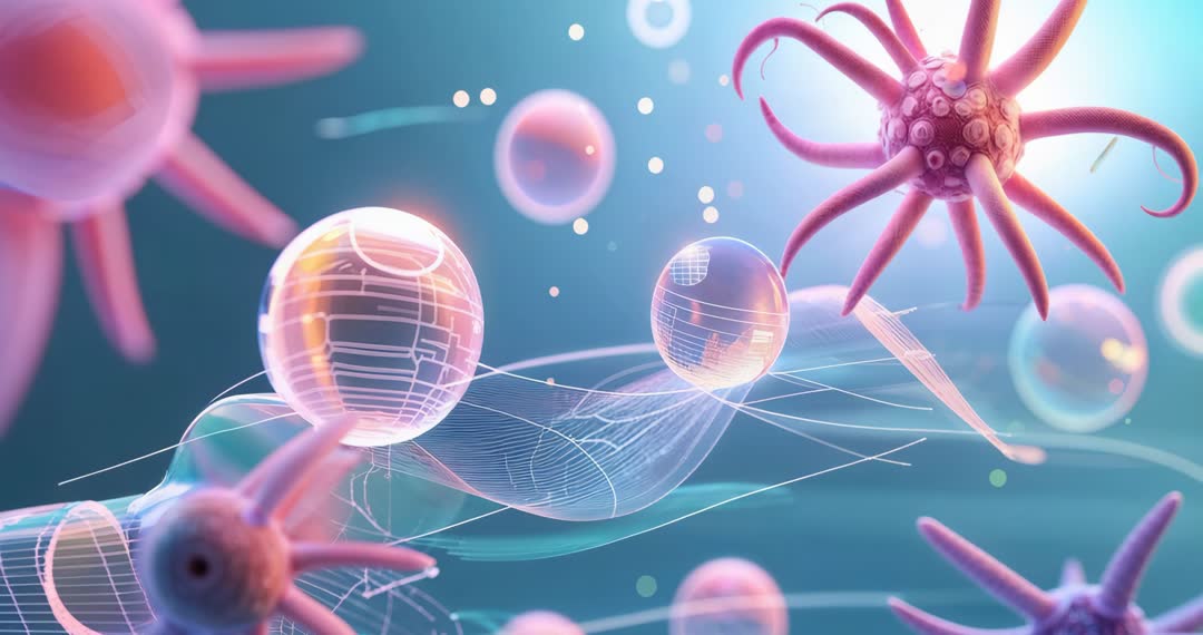 AI Generated Image. This captivating visualization explores futuristic technology and innovation videory, featuring spiky tentacles and transparent spherical forms. Ideal for high-tech presentations, digital marketing content, and educational material on scientific advances and futuristic virtual environments.