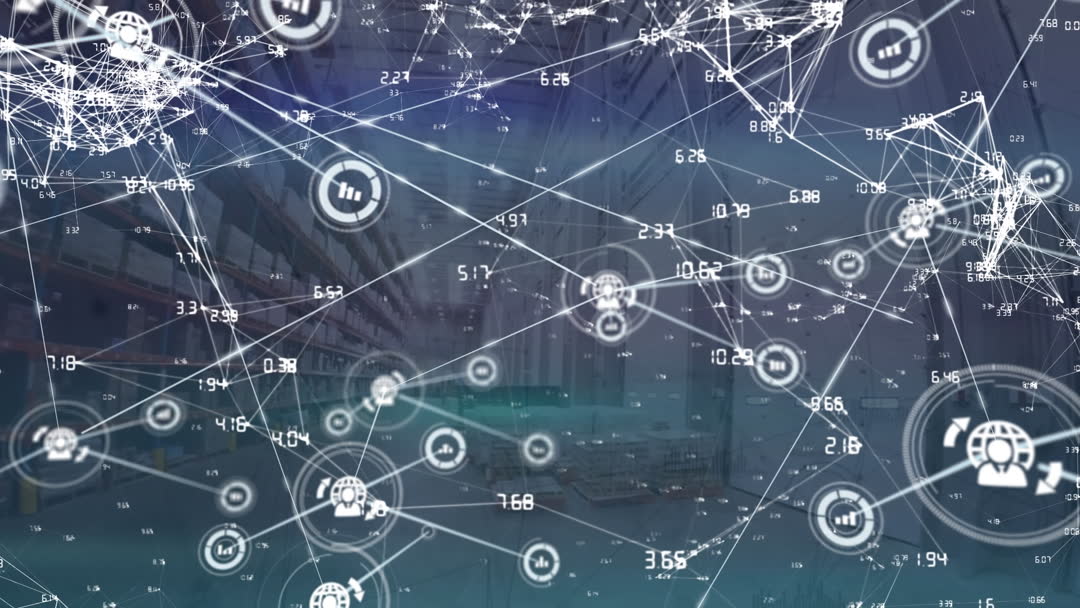 This video illustrates the integration of modern technology in sectors like logistics and supply chain management. The digital composite represents interconnected data systems and analytics within a warehouse environment, showcasing innovation and efficiency. Ideal for articles or presentations about advanced warehousing solutions, inventory efficiency, or the impact of digital transformation on supply chain management.