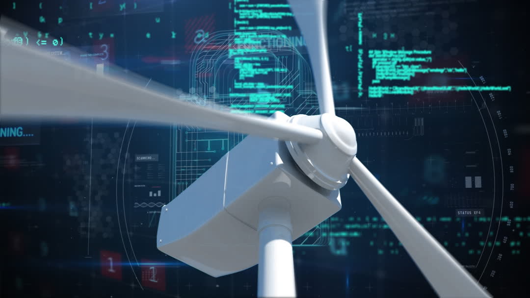 - Futuristic Wind Turbine Animation with Cyber Security Elements