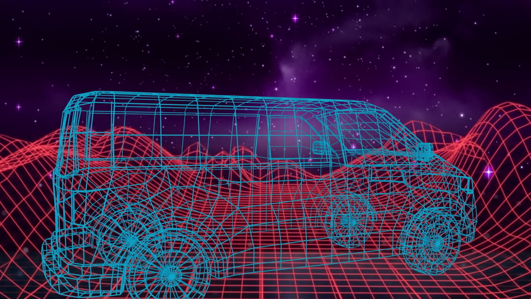 Futuristic Wireframe Van in Neon Dreamscap Video