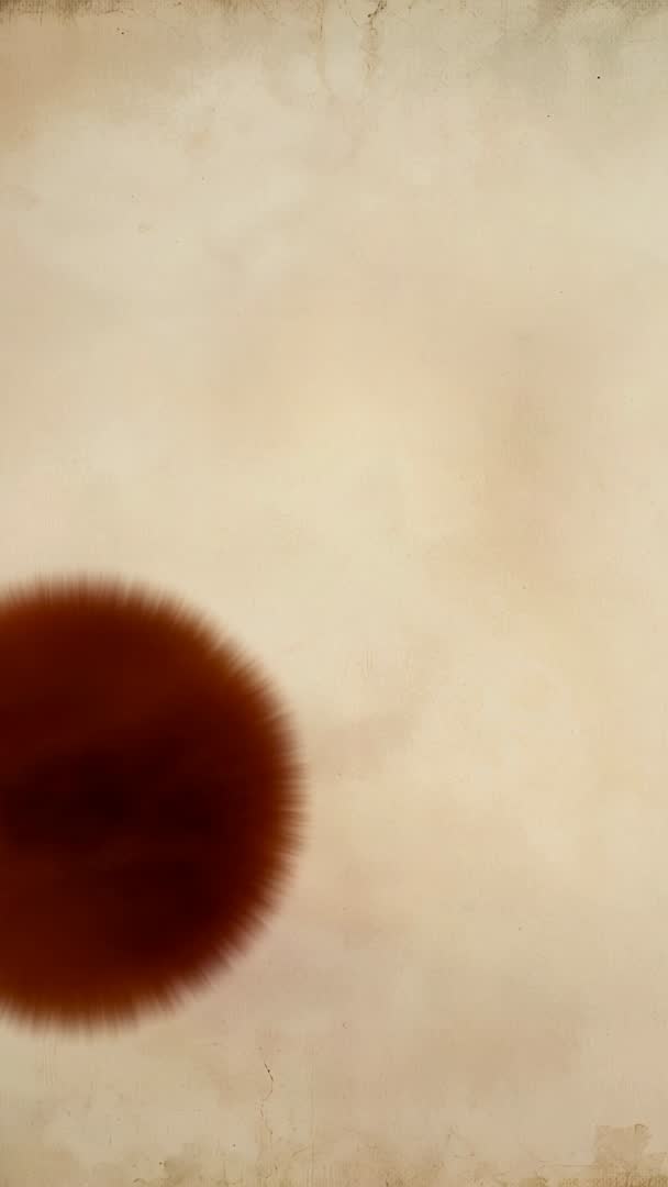- Fuzzy brown circle entering from left across aged parchment background vertical clip