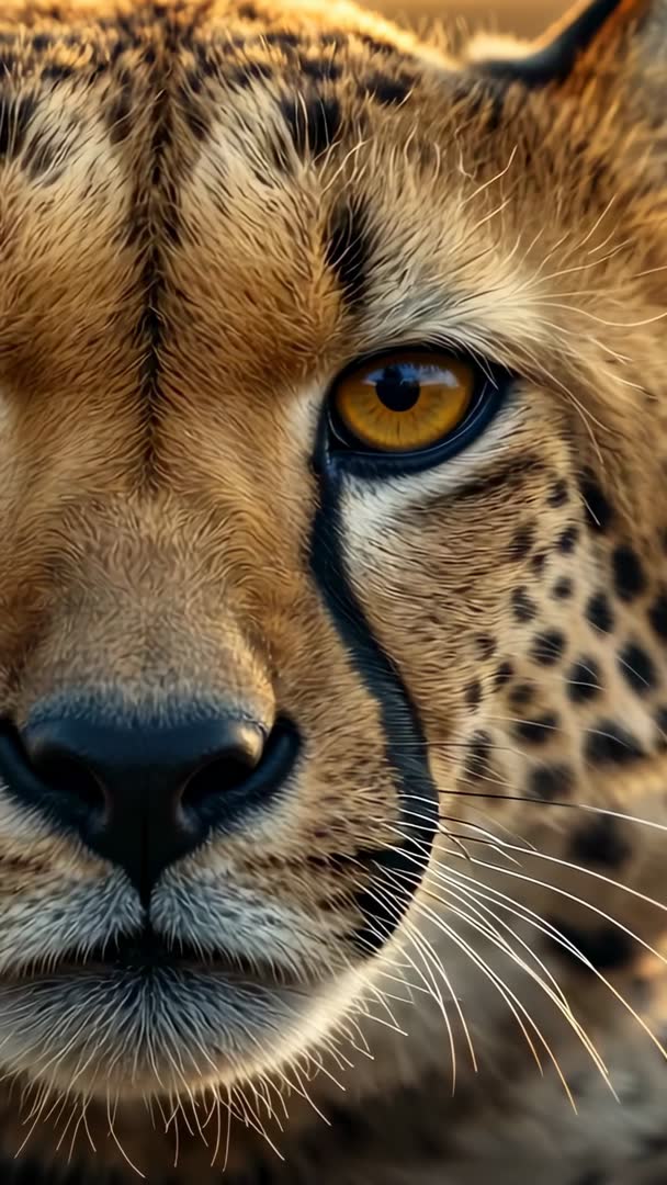 - Gazing cheetah face centering on amber eye in vertical wildlife footage