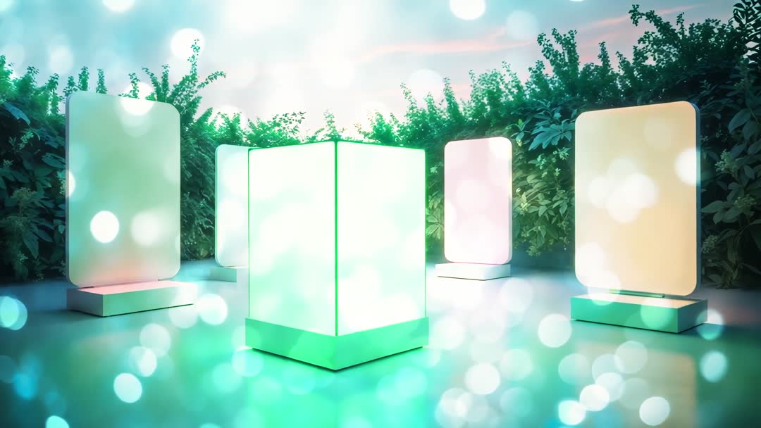 <a target="_blank" href=https://pikwizard.com/video/geometric-cube-surrounded-by-glowing-pastel-panels-in-garden-setting/d3cab14bc1eb3629449f6491c25b568e/>PikWizard</a>