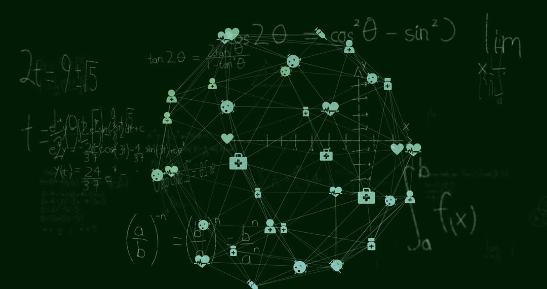 - Geometric Digital Network with Icons Overlaid on Mathematical Background