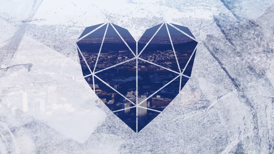 Geometric Heart Over Cityscape Symbolizing Global Connectivity Video