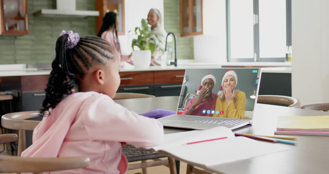 - Girl Enjoying Christmas Video Call with Grandparents at Home
