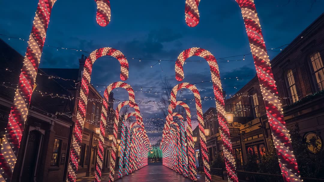 - Glide Through Festive Street with Illuminated Candy Cane Arches