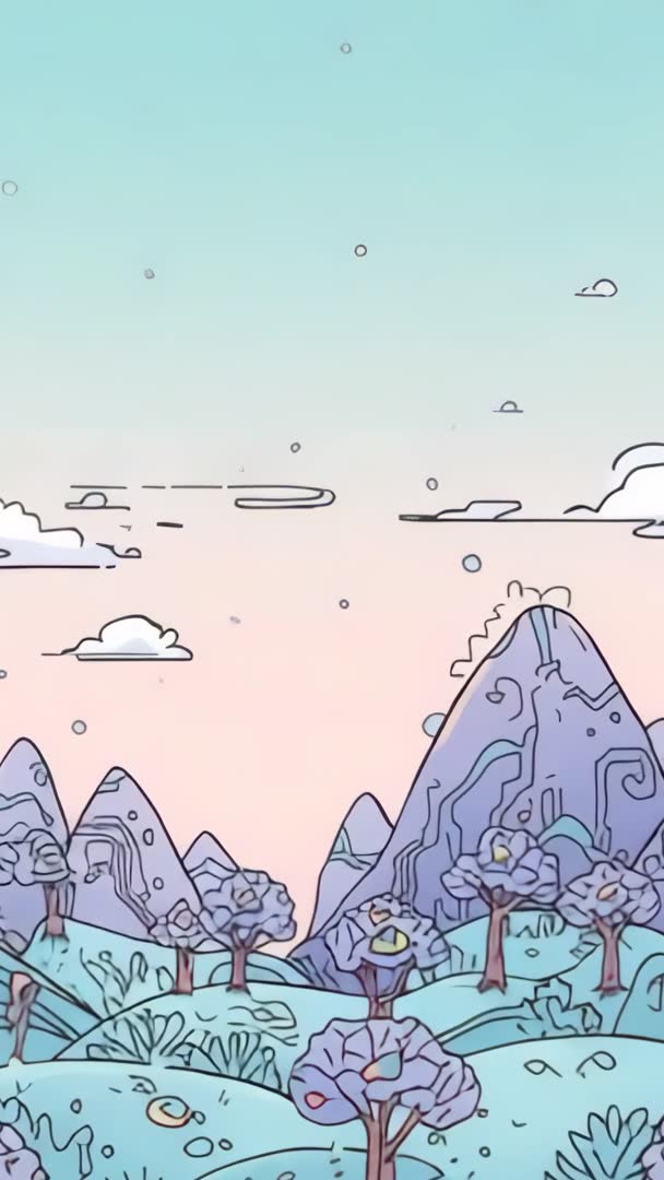 AI Generated Image. Gliding camera over pastel hills and purple mountains, creating serene fantasy ambience. Featuring gentle particle motion and stylized trees across rolling terrain, offering calm visual rhythm. Suiting vertical mobile formats and social platforms, working well for Instagram Stories, TikTok, Snapchat, mobile ads. Serving meditation apps, children content, wellness branding, beauty campaigns, animated title sequences. Providing loop-friendly composition and clear center space for overlaying text, logos, UI elements. Supporting dreamy, playful, peaceful messaging through soft colors and simple shapes. Delivering ready-to-use background for video intros, screensavers, product presentations, website hero sections, and animated wallpaper for phones.