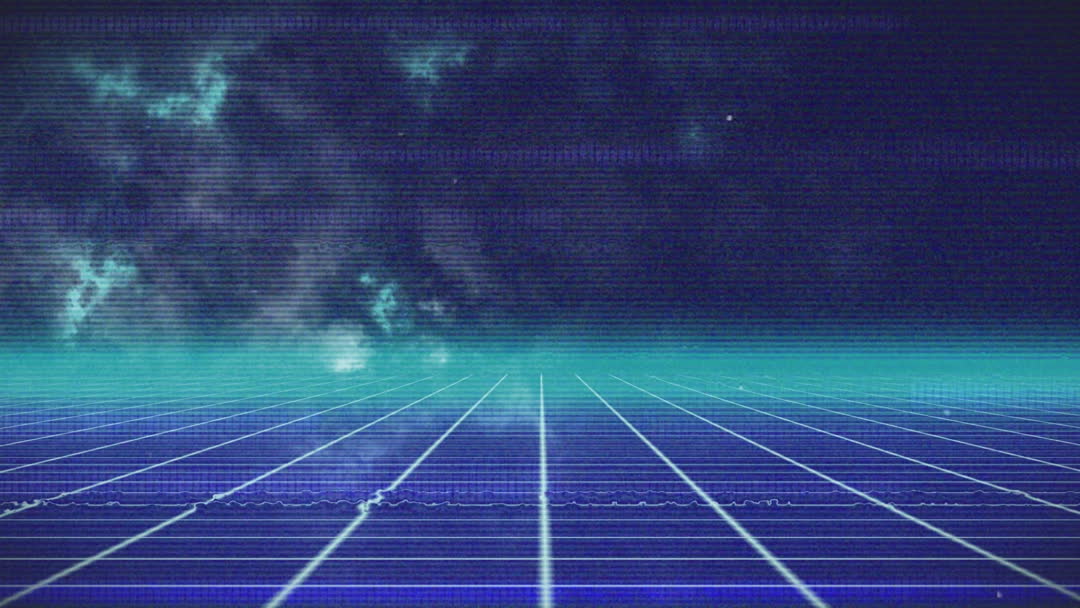 Glitched Digital Space with Neon Grid Video
