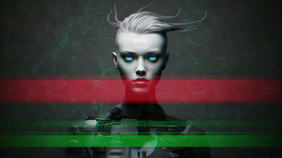 - Glitching Green Lines Sweep Futuristic Female Android in Void