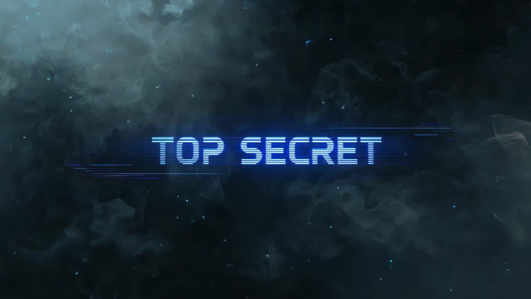 - Glitching TOP SECRET Hologram Emerging in Cosmic Smoke with Scanline Digital Effect