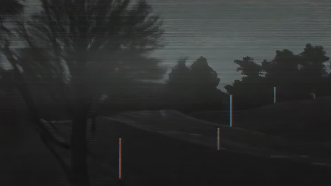 Glitchy Scan-Line Effects in Twilight Rural Landscape Video