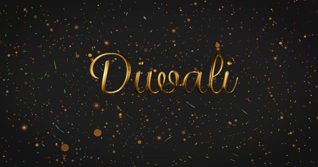 Glittering Diwali Text with Golden Sparkles on Black Video