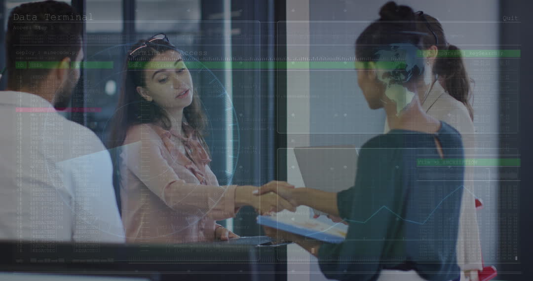 Global Business Collaboration Amidst Digital Data Visualization Video