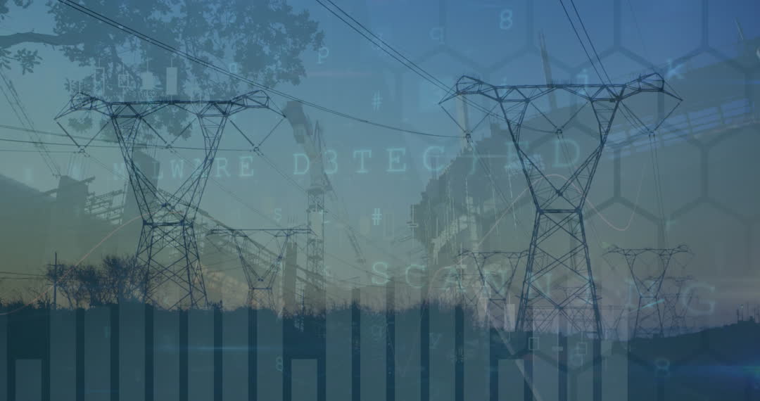 Power lines juxtaposed with digital icons represent the merging of technology and communication. This visual embodies the integration of futuristic digital technology. Ideal for illustrating concepts in global business, modern connection strategies, and internet technology advancements.