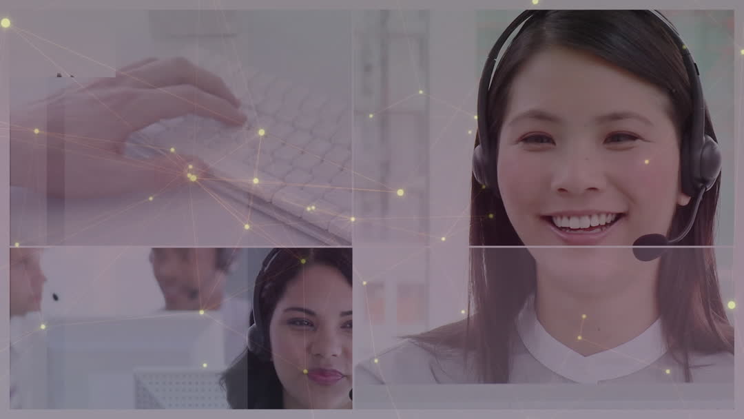 Young professionals wearing headsets, representing worldwide connection and collaboration in a corporate workspace, ideal for illustrating global communication, collaborative work, and modern technology themes.