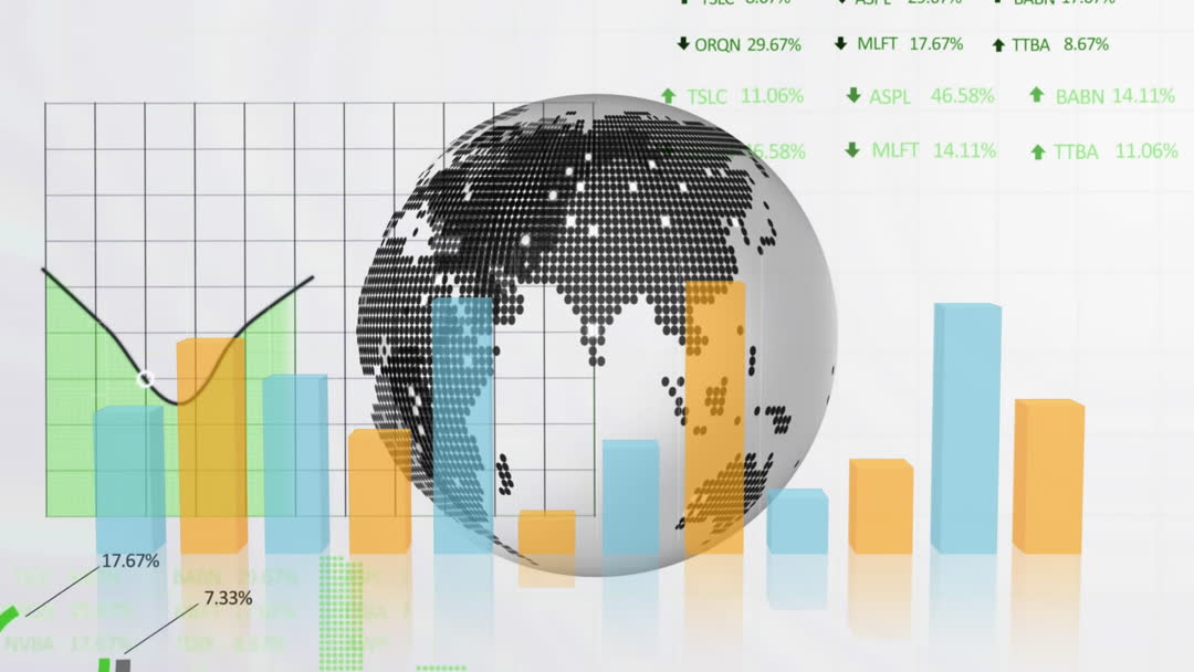 Globe accompanied by financial charts and data signifies international business and economic trends. Useful for topics on business strategy, global marketing projects, finance education, or data science projects. Visualizes dynamic elements of financial ecosystems in presentations or analytical discussions.