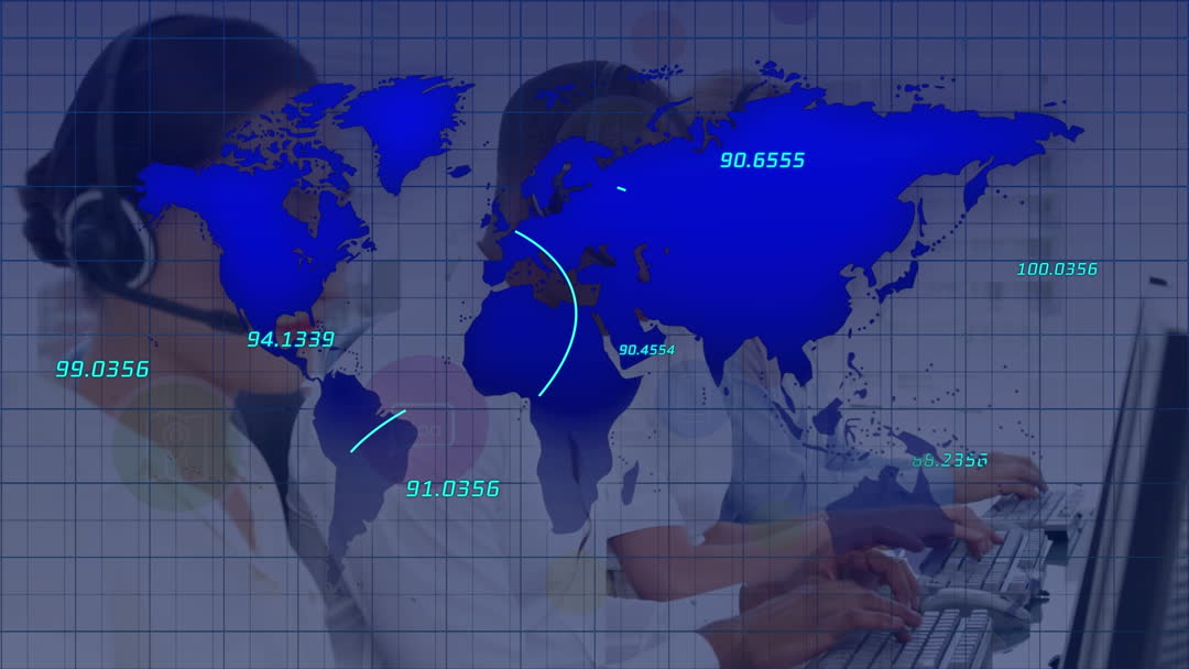 This video illustrates the concept of global business data analysis with an emphasis on digital communication. Diverse business professionals are seen working in an office environment with an animated world map overlay, indicating the interconnectedness and data flow across the globe. Useful for representing themes of international business, technology integration, and global communication strategies.