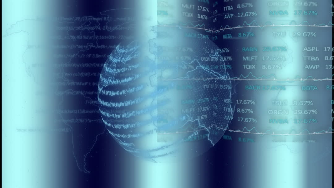 Animation illustrating global data processing and digital technology brings focus to the intersection of finance, business analytics, and international communication. Concepts of data analytics, technology features, and economic trends are effectively visualized through overlays on a globe background making it suitable for presentations on global finance strategies, technological advancements, or international market analysis.
