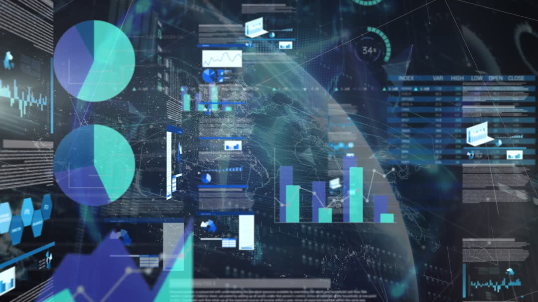 - Global Business Finance Data Animation with 3D Globe