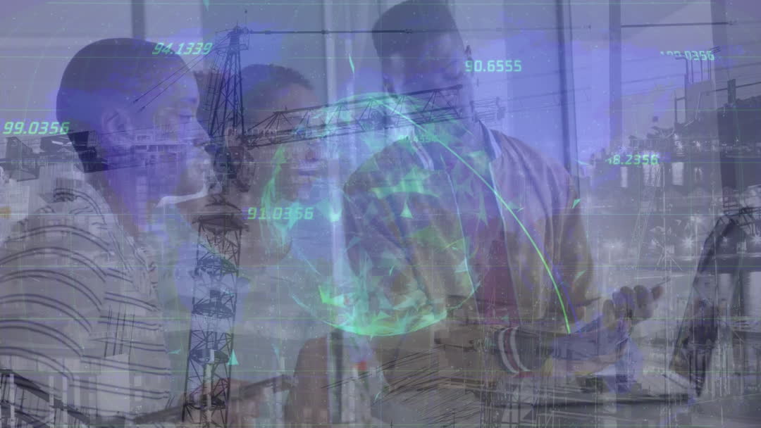 This video depicts a diverse group of business people collaborating against a backdrop of a digital globe and data elements. It symbolizes the integration of global business and technology. This could be utilized in contexts related to digital marketing, multinational business strategies, technology innovation, or financial analytics to convey concepts of teamwork and global connectivity.