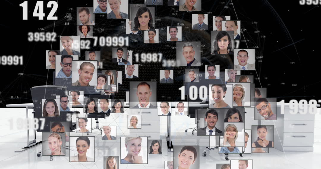 Designed for presentations, this video creatively represents global business networking using overlapping digital profiles and evolving data numbers. May be used by businesses, technology developers, and educators to visually demonstrate interconnected communities, big data concepts, and modern office dynamics in a corporate or digital environment. Also useful for illustrating virtual team management and connectivity across multiple platforms.