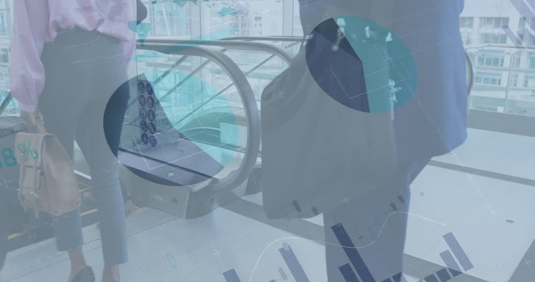 Business professionals walking reflect economic activity, enhanced by digital financial charts. Perfect for presentations on market trends, corporate strategies, or team building tools, highlighting diverse professional efforts and economic interconnectivity.