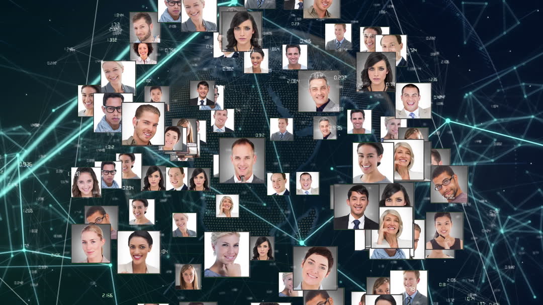 Global Communication Network Concept with Portrait Collage Video