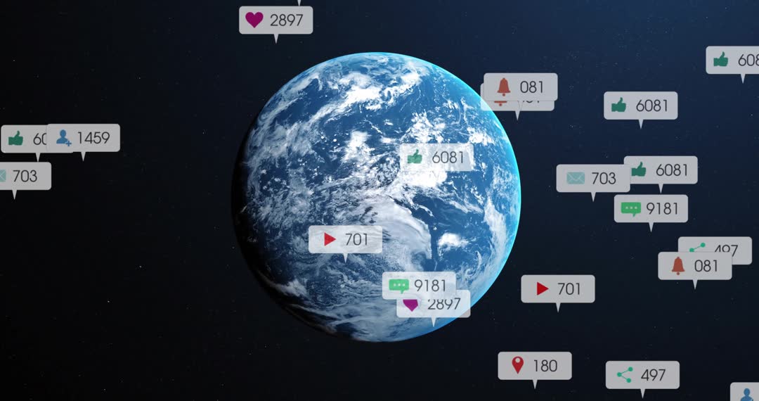 Representing worldwide digital interactions, useful for illustrating concepts in global communication, digital engagement, and technological connectivity. Suitable for topics on social media influence and digital communication in forecasts, articles, or educational material on modern technology usage and social connectivity worldwide.
