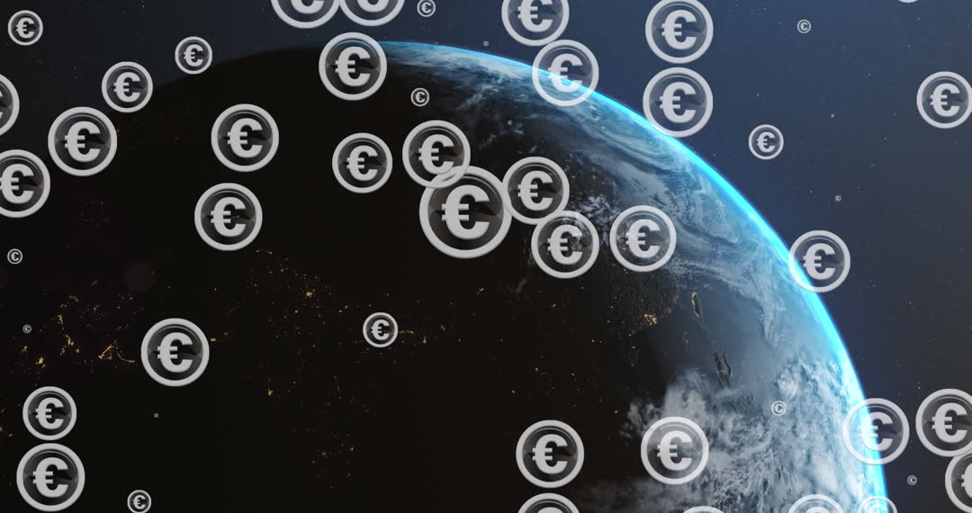- Global Currency Concept with Euro Symbols Orbiting Earth