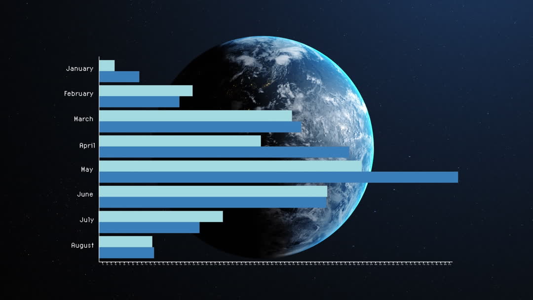 Global Data Analysis with Overlapping Spinning Earth and Bar Graph Video