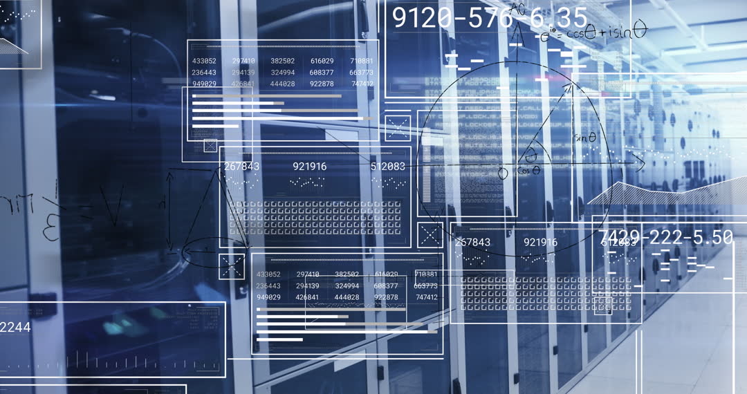 This visual illustrates advanced data analytics, showcasing a server room overlaid with a digital interface featuring global data interactions. It is ideal for use in technology-related materials, presentations on data science innovations, AI, and global connectivity. The futuristic feel provides context for discussing digital transformation in businesses or IT sectors.