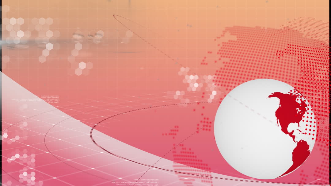 Global data network animation featuring red and white elements on a pink abstract digital grid background. Displaying worldwide connectivity and processing concepts, this graphic is ideal for technology presentations, corporate videos, and futuristic media highlighting innovation and communication.