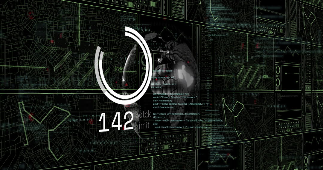 Animation depicting digital data processing overlaying a background of codes and grids. Useful for illustrating technology, global connectivity, IT solutions, data analytics, and modern computing concepts. Ideal for use in tech blogs, educational materials on programming, and digital corporate presentations.