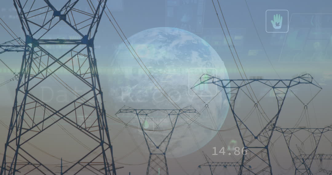 Global Data Processing Overlaid with Power Grid Imagery Video