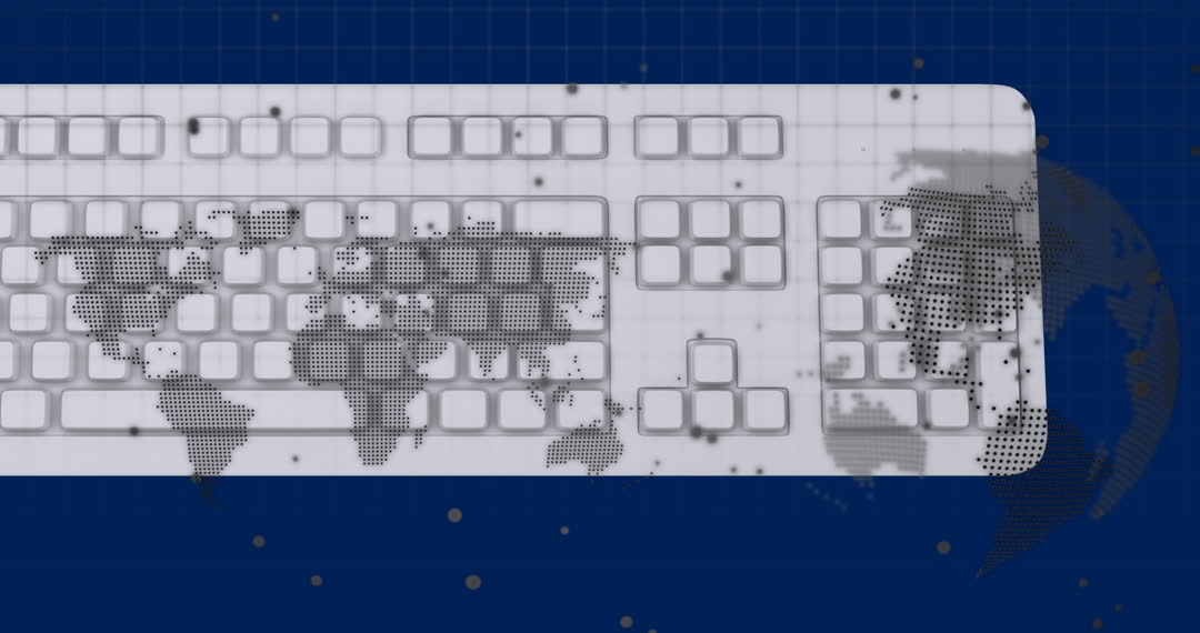 This visual combines a computer keyboard overlay with a dot matrix world map and digital globe motif. It is ideal for presentations on global business strategies, technology solutions, or financial innovations. Also suitable for websites or marketing materials focused on international business development and data management systems.