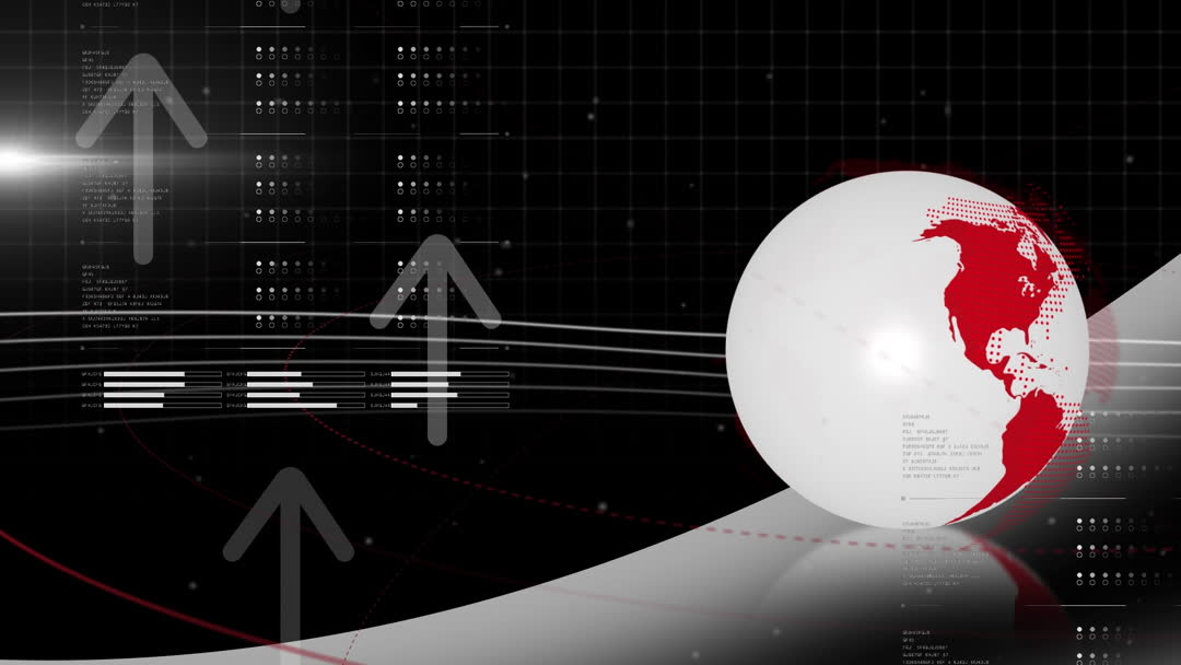 This video captures a digital theme with a globe, data elements, and upward arrows, signifying trends in data processing and global connectivity. Ideal for illustrating concepts of technology, networking, and innovation, making it suitable for presentations, tech websites, and business reports. The use of contrasting colors enhances attention to details and information flow.