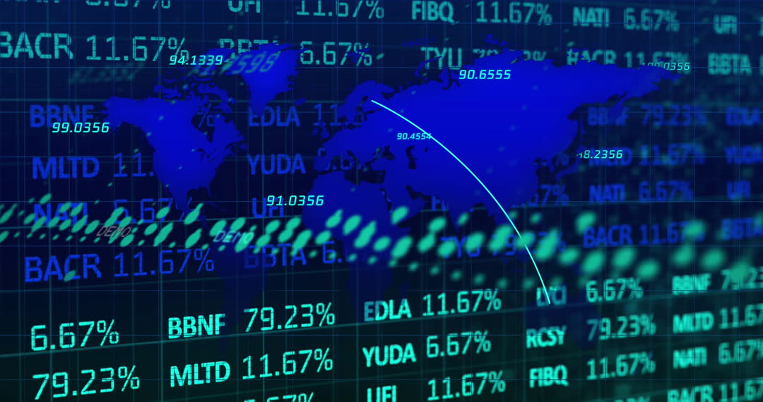 Digital world map overlay with fluctuating data visuals illustrates global business concepts, ideal for presentations on finance, data analytics, and technology innovations. This video can enhance reports involving market trends and big data, or serve as eye-catching digital media content.