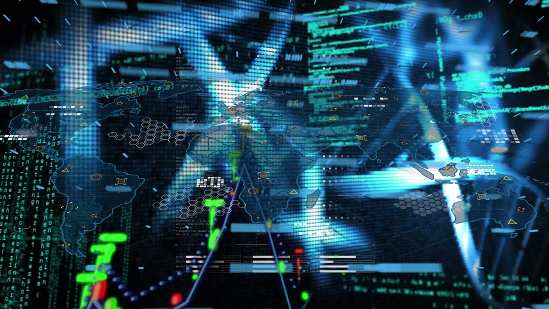 Global Data Processing with Futuristic Interface Elements Video