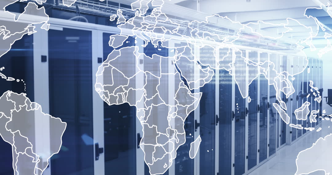 Illustrates concepts of global data management and technology infrastructure. Useful for technology companies and educational materials focused on data storage and global networking systems.
